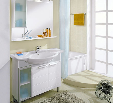 Первое, подобрать оптимальную высоту – как правило, умывальники устанавливаются на высоте 85 -95 см, т.к. эта высота оптимальна для людей разного роста. Второе, требуется определить оптимально удобную ширину, длину и глубину раковины - чаши. Эти параметры зависят от размера ванной комнаты. Конечно, чем умывальник шире, длиннее и глубже, тем лучше, брызги воды останутся внутри чаши, а не на стенах и полу.