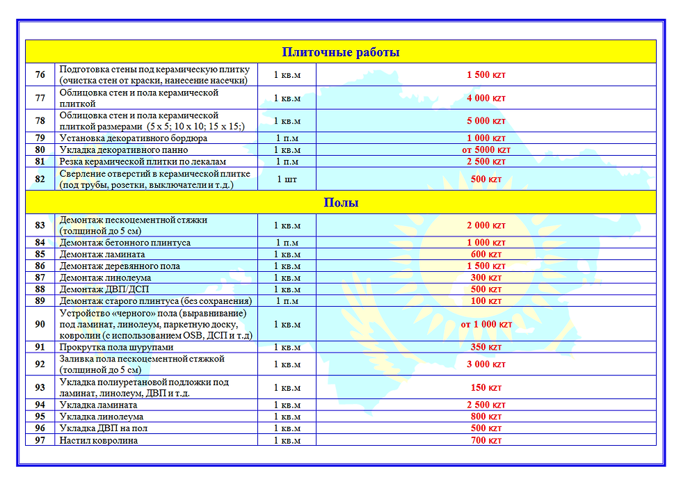 Стоимость всех работ указана без учета стоимости материала.