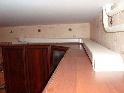 Пластиковые воздуховоды бывают с прямоугольным и с круглым поперечным сечением. Воздуховоды с прямоугольным сечением меньше бросаются в глаза, а также их можно проложить по навесным шкафчикам кухонной мебели.